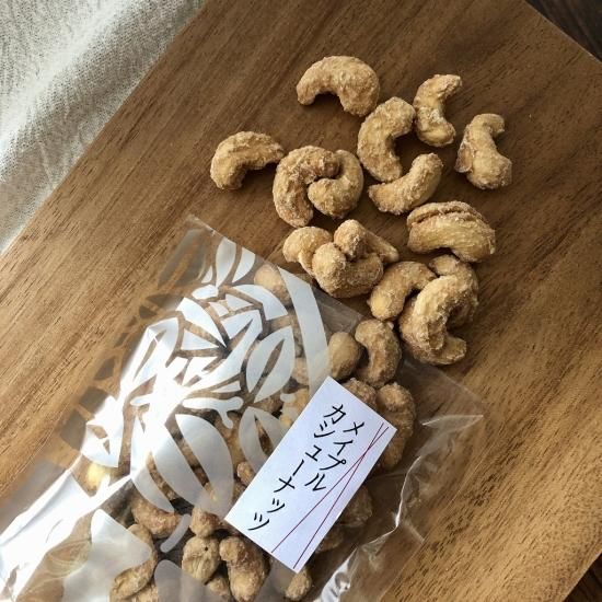 柔らかいカシューナッツを、甘いメイプルシロップで包んだ、当店のオリジナルです。